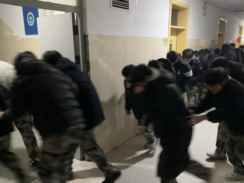 下午18时,急促的哨声骤然响起。学生在老师和教官的指引下,迅速进入应急状态。大家弯腰低姿,用湿毛巾或衣袖捂住口鼻,沿着预定疏散路线,快速、有序地撤离到安全区域。整个过程中,同学们沉着冷静、配合默契,未出现拥挤、推搡现象,全体人员在预定时间内安全抵达指定集结地点。