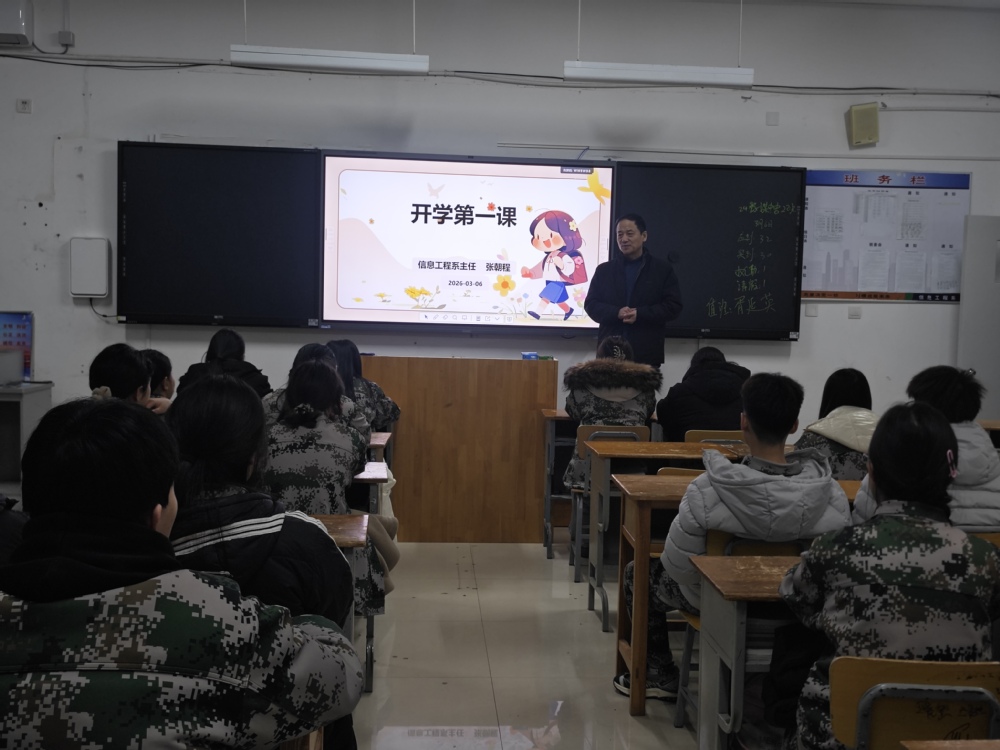 为帮助学生及时收心并确立新学期目标,3月6日晚,信息工程系主任张朝程在行知楼202教室为数字媒体技术应用专业中专2班的学生带来了一场精彩的开学第一课。