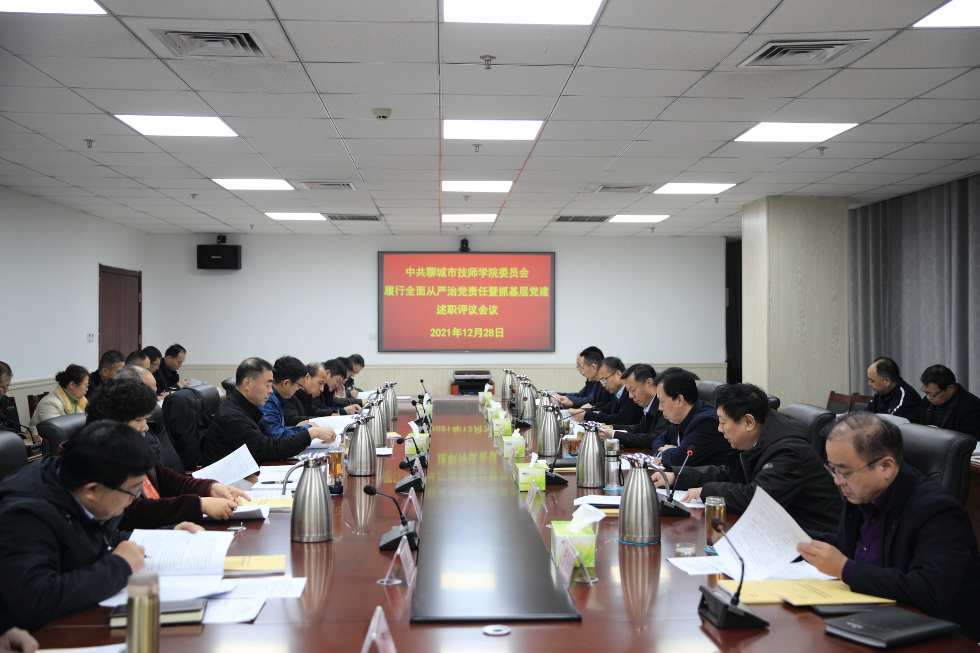 12月28日上午,学院召开2021年度履行全面从严治党责任和抓基层党建述职评议会议。党委书记张连臣主持会议并讲话,全体班子成员、27个党支部书记参加会议。