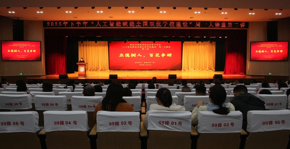 为落实立德树人根本任务,深化“三全育人”改革,展示交流育人经验,10月20日下午,学院在实训中心A座报告厅举办2025年下半年“人工智能赋能全国双优学校建设”周一大课堂第二讲——立德树人 百花争妍活动。聊城市关工委“五老助青少年健康”心理健康专家团团长、原聊城市第四人民医院党委书记武建胤,学院党委书记金同元,党委副书记、院长徐公义等学院领导班子成员出席活动,中层正副职干部、全体班主任、新入职教师共200余人参加活动,活动由党委委员、组织人事处处长孔晓燕主持。
