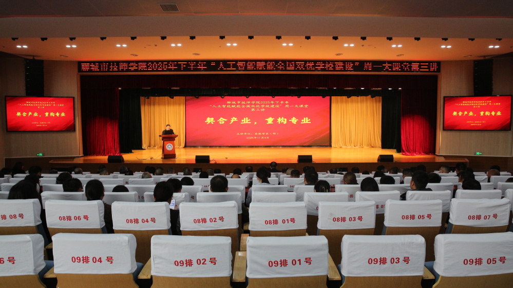 11月3日下午,学院在实训中心A座报告厅举办2025年下半年“人工智能赋能全国双优学校建设”周一大课堂第三讲活动。学院党委书记金同元,党委副书记、院长徐公义等领导班子成员出席活动。副主管以上干部、教研室主任100余人参加活动。活动由党委委员、质量管理与绩效考核办公室主任王庆刚主持。