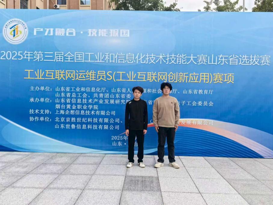 11月1日,第三届全国工业和信息化技术技能大赛山东省选拔赛工业互联网运维员S(工业互联网创新应用)赛项在烟台黄金职业学院圆满落幕。智能制造系学生康世乐、董经发,凭借深厚的专业素养与出色的实操水平奋勇争先,以第7名的成绩荣获学生组三等奖。