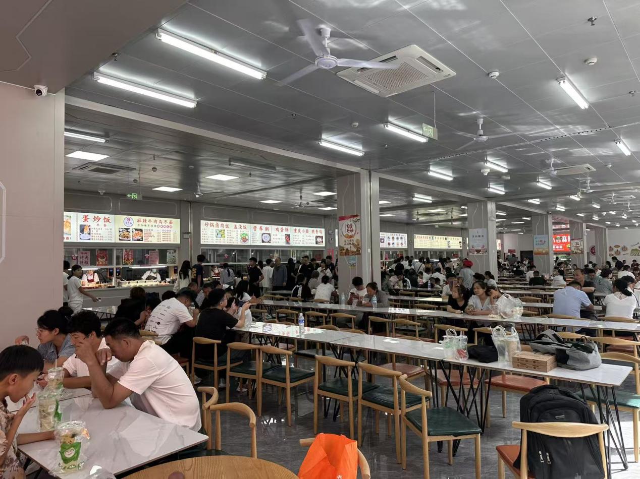 食堂团队聚焦饮食保障,提前调研需求优化菜品,增加清淡餐食、特色小吃,窗口旁设免费汤供应点提供热汤。食堂延长就餐时间至晚间7点,从食材溯源到窗口服务全程把关,确保食品安全充足。