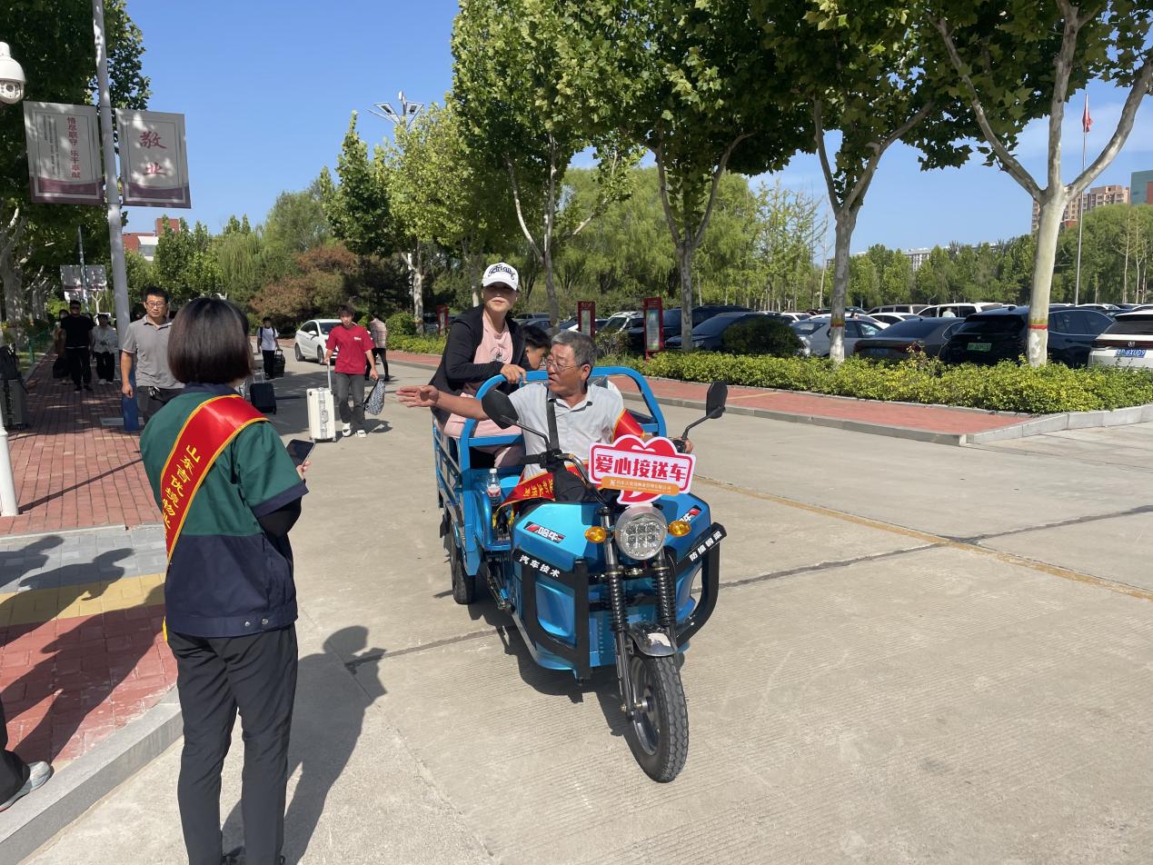 物业团队对迎新点、宿舍楼道、公共卫生间等重点区域进行深度清扫消杀,消除卫生死角。迎新当天,物业设饮水站,免费提供100箱矿泉水为新生及家长送清凉;总务处调配多辆爱心接送三轮车,在校门与宿舍区间往返,工作人员主动搬运行李,提供“点对点”免费接送,助力新生轻松入学。