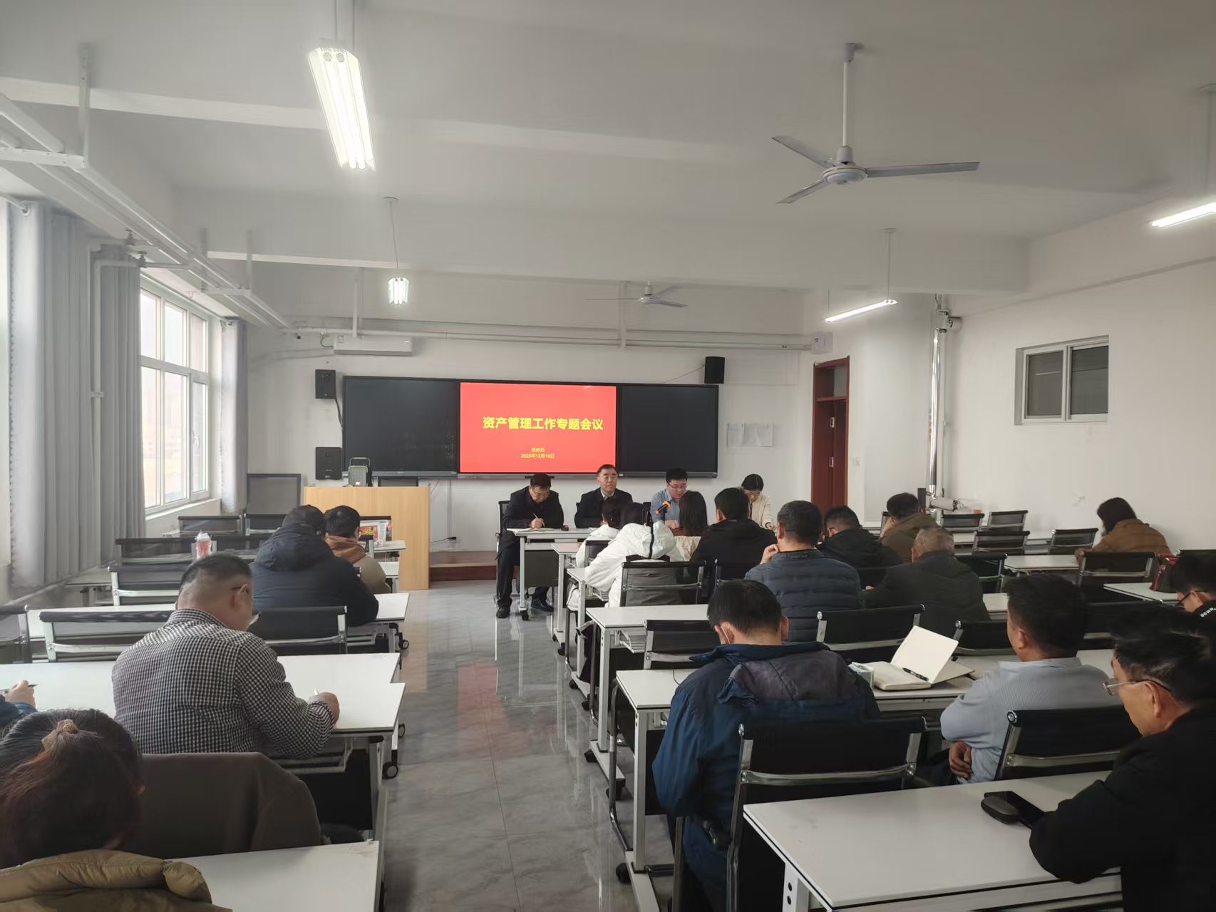 12月18日下午,学院召开资产管理工作专题会议,各部门分管资产负责人、资产专员及总务处资产管理人员共计60余人参加会议。学院党委委员、副院长于乐山出席会议并讲话。会议由总务处处长王令云主持。